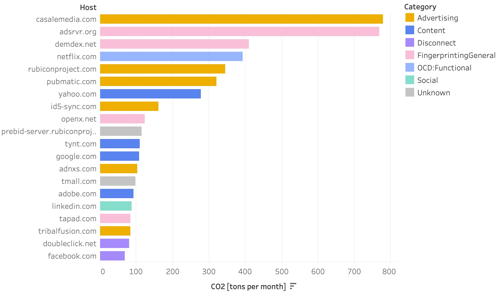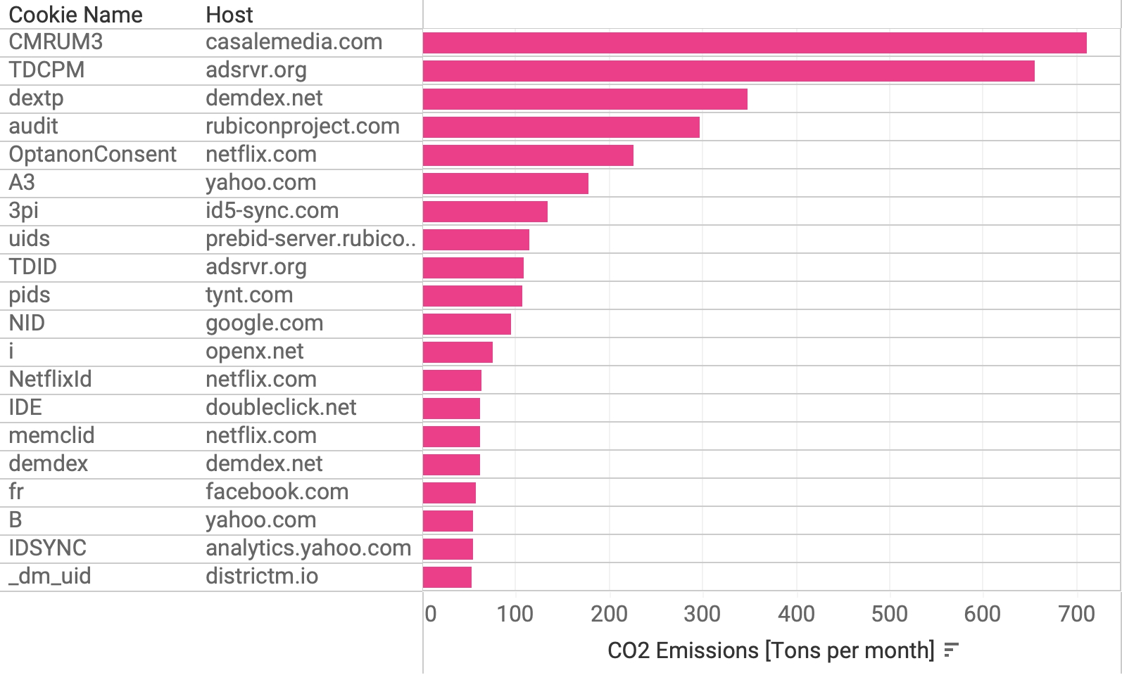 Figure 12. Estimated emissions of CO2 by the top unique cookies (combination of host and name).