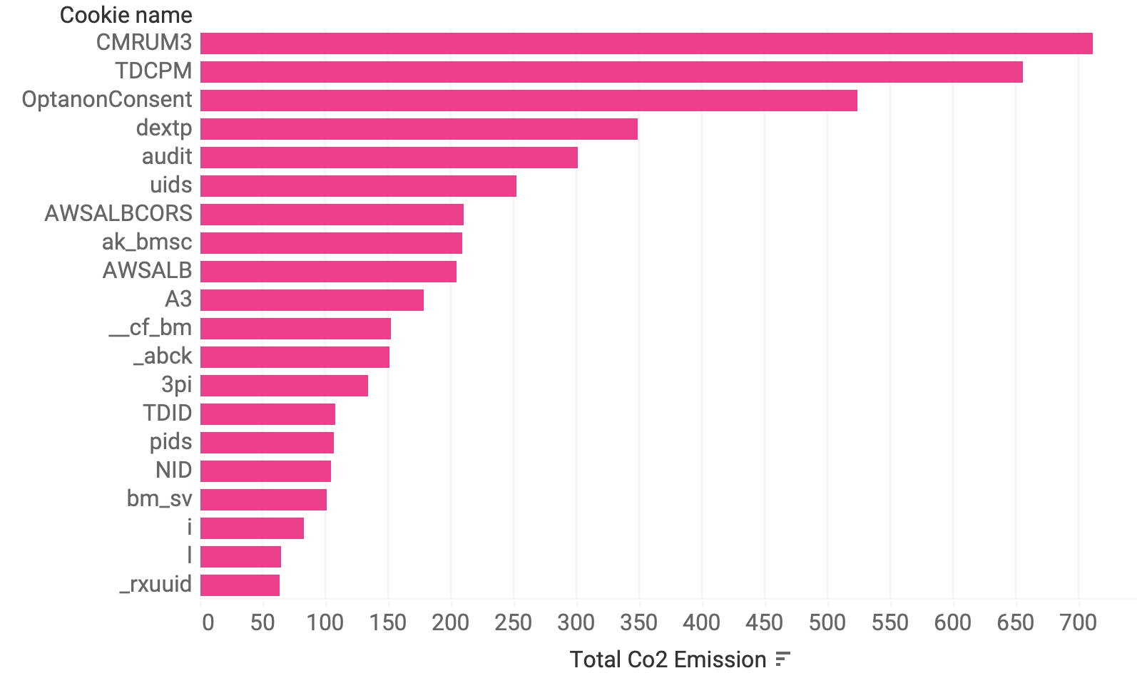 Figure 14. Top 20 cookies with a unique name by CO2 emissions. Notice that this does not prevent distinguishing two cookies from different owners that are named the same.